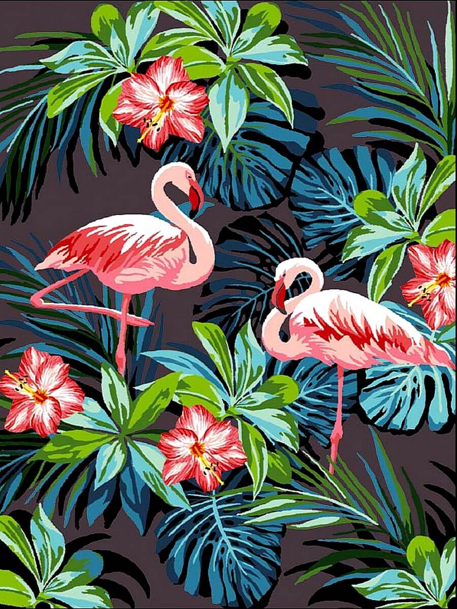 Набор для рисования картины по номерам Фламинго в цветах, арт. VK187, 30х40см. ***НАЛИЧИЕ УТОЧНЯЙТЕ***
