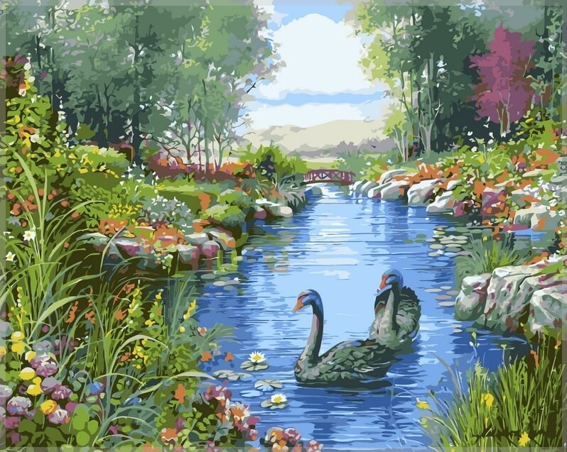 Набор для рисования картины по номерам Черные лебеди, арт. VP127, 40х50см. ***НАЛИЧИЕ УТОЧНЯЙТЕ***
