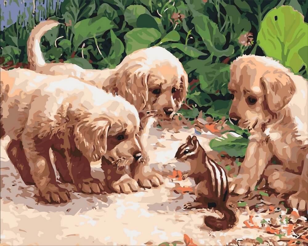 Набор для рисования картины по номерам Щенки и бурундук, арт. KHO4055, 40х50см. ***НАЛИЧИЕ УТОЧНЯЙТЕ***