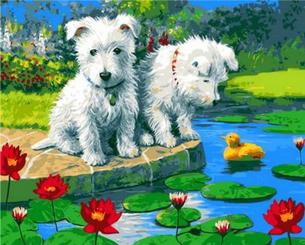 Набор для рисования картины по номерам Щенки и уточка, арт. MR-Q906, 40х50см. ***НАЛИЧИЕ УТОЧНЯЙТЕ***