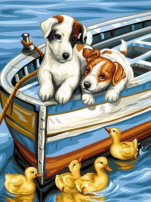 Набор для рисования картины по номерам Щенки и утята, арт. VK144, 30х40см. ***НАЛИЧИЕ УТОЧНЯЙТЕ***
