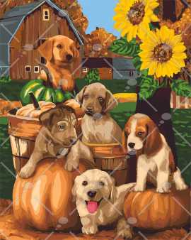 Набор для рисования картины по номерам Щенки на природе, арт. KHO4106, 40х50см. ***НАЛИЧИЕ УТОЧНЯЙТЕ***