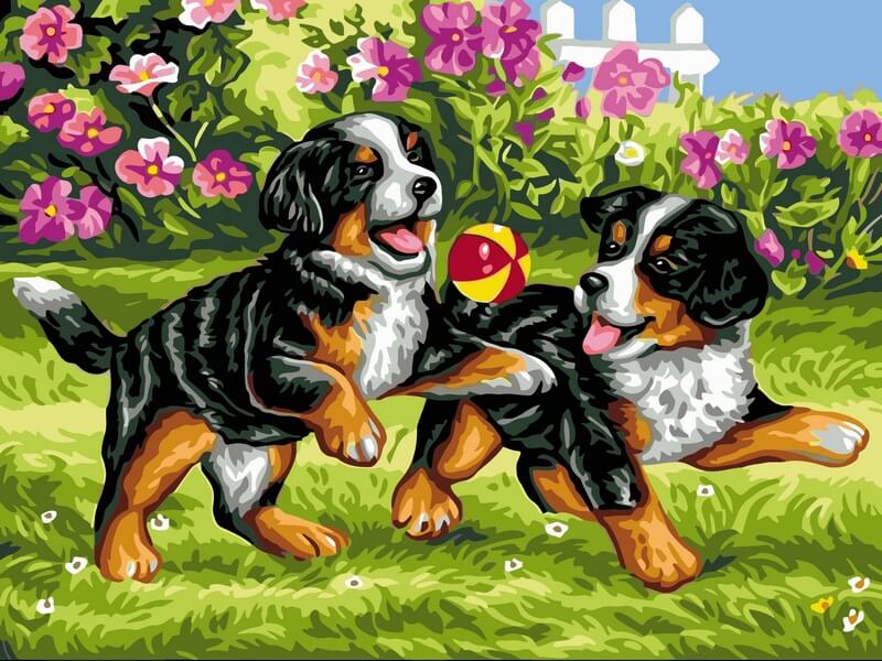 Набор для рисования картины по номерам Щенки на прогулке, арт. VK107, 30х40см. ***НАЛИЧИЕ УТОЧНЯЙТЕ***