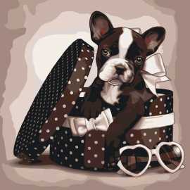 Набор для рисования картины по номерам Щенок в шляпной коробке, арт. KHO4039, 40х40см. ***НАЛИЧИЕ УТОЧНЯЙТЕ***