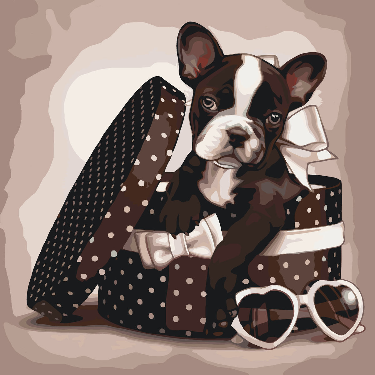 Набор для рисования картины по номерам Щенок в шляпной коробке, арт. KH4039, 40х40см. ***НАЛИЧИЕ УТОЧНЯЙТЕ***