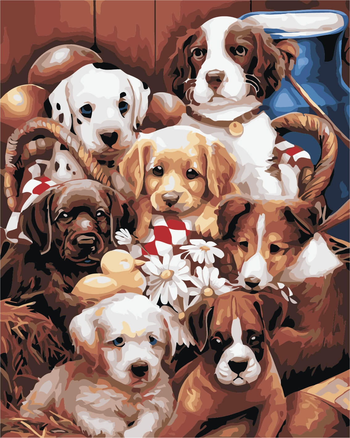 Набор для рисования картины по номерам Щенята, арт. AS0392, 40х50см. ***НАЛИЧИЕ УТОЧНЯЙТЕ***