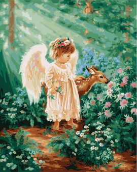 Набор для рисования картины по номерам Ангелочек в лесу, арт. BK-GX21471, 40х50см. ***НАЛИЧИЕ УТОЧНЯЙТЕ***