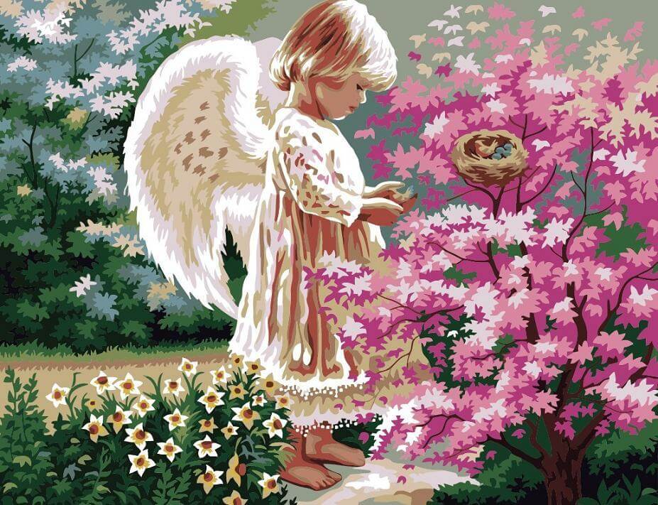 Набор для рисования картины по номерам Ангелочек и птички , арт. KHO1048, 40х50см. ***НАЛИЧИЕ УТОЧНЯЙТЕ***