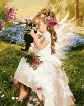 Набор для рисования картины по номерам Ангел с котенком, арт. BK-GX9272, 40х50см. ***НАЛИЧИЕ УТОЧНЯЙТЕ***
