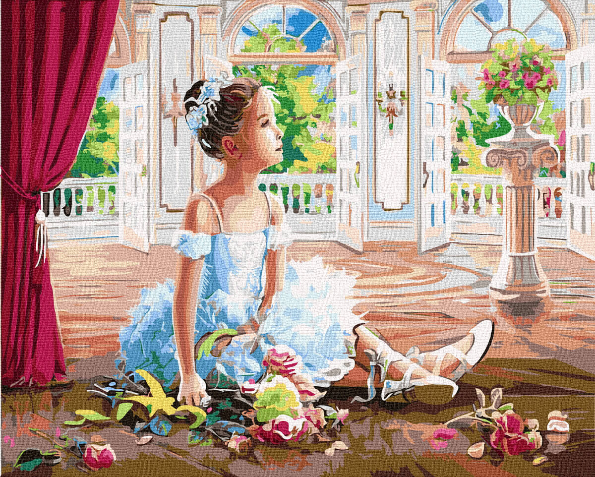 Набор для рисования Балерина с цветами, арт. BK-GX34411 (Brushme) содержит: прогрунтованный холст на подрамнике с нанесенной номерной схемой, акриловые краски, кисти, крепеж на стену и инструкцию с фото. Размер 40х50см.
