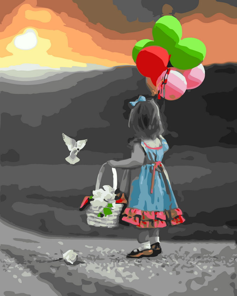 Набор для рисования Девочка и голубь, арт. BK-GX31825 (Rainbow Art) содержит: прогрунтованный холст на подрамнике с нанесенной номерной схемой, акриловые краски, кисти, крепеж на стену и инструкцию с фото. Размер 40х50см.