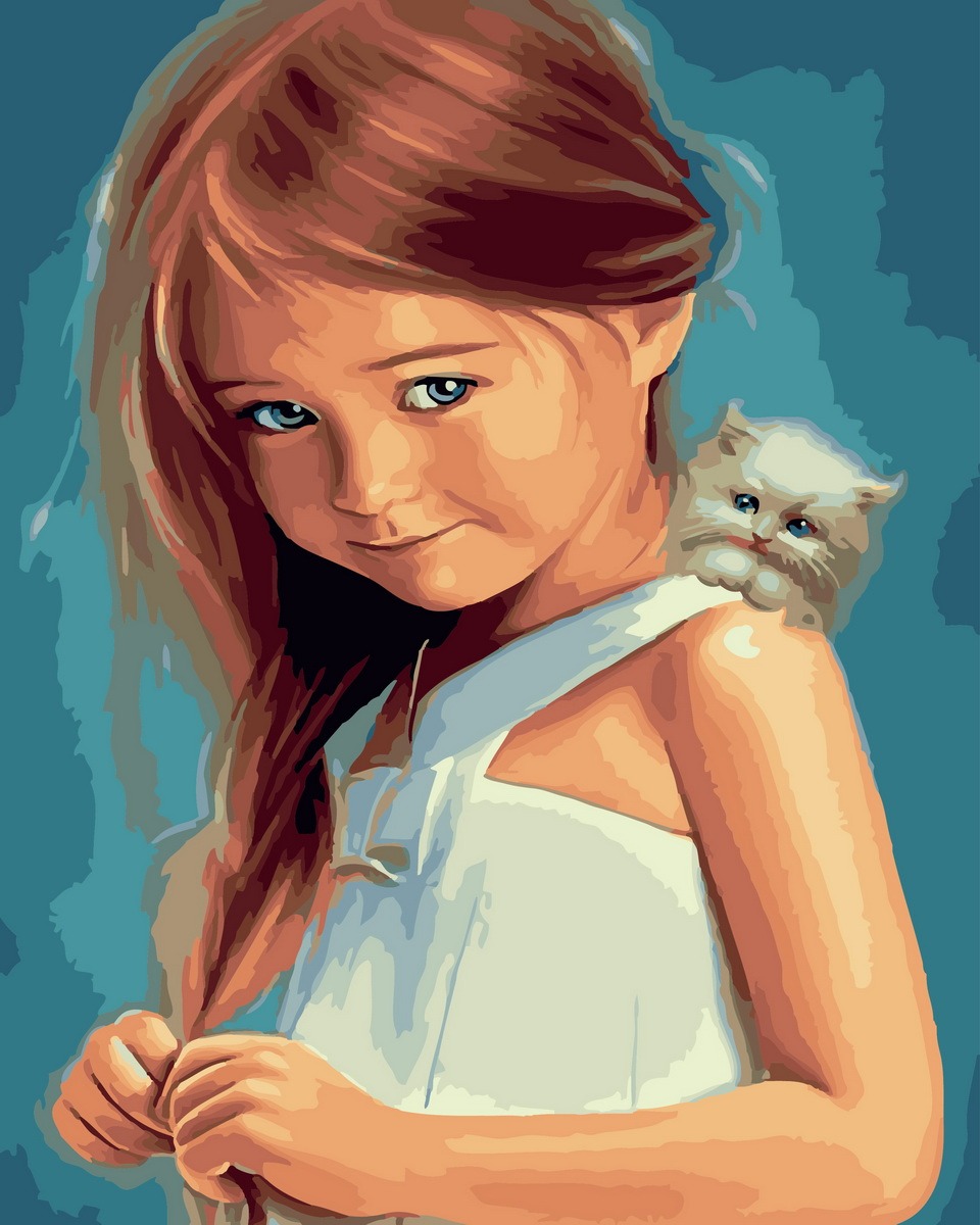 Набор для рисования картины по номерам Девочка и котенок, арт. BK-GX29829, 40х50см. ***НАЛИЧИЕ УТОЧНЯЙТЕ***
