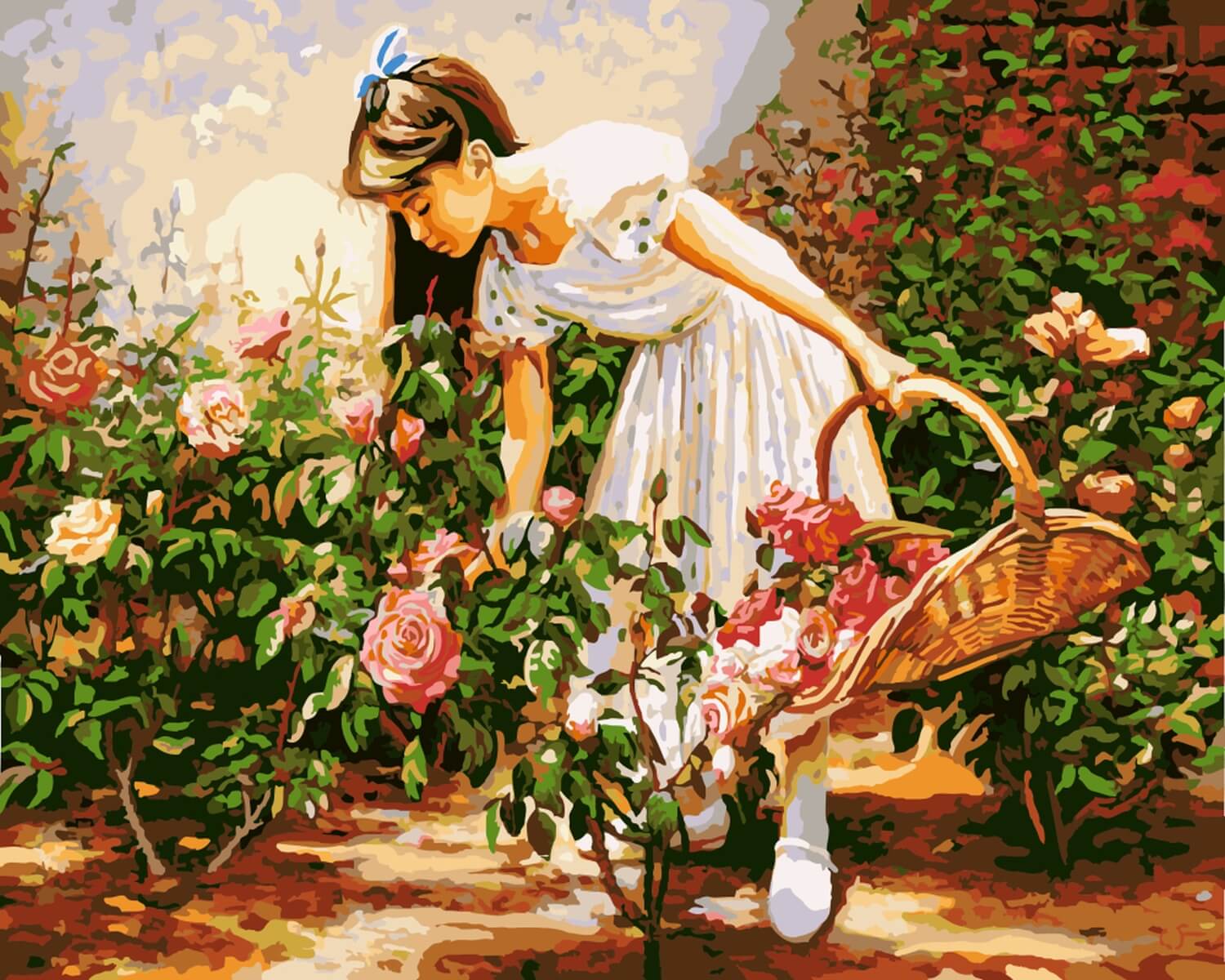 Набор для рисования картины по номерам Девочка с корзинкой роз, арт. BK-GX8848, 40х50см. ***НАЛИЧИЕ УТОЧНЯЙТЕ***