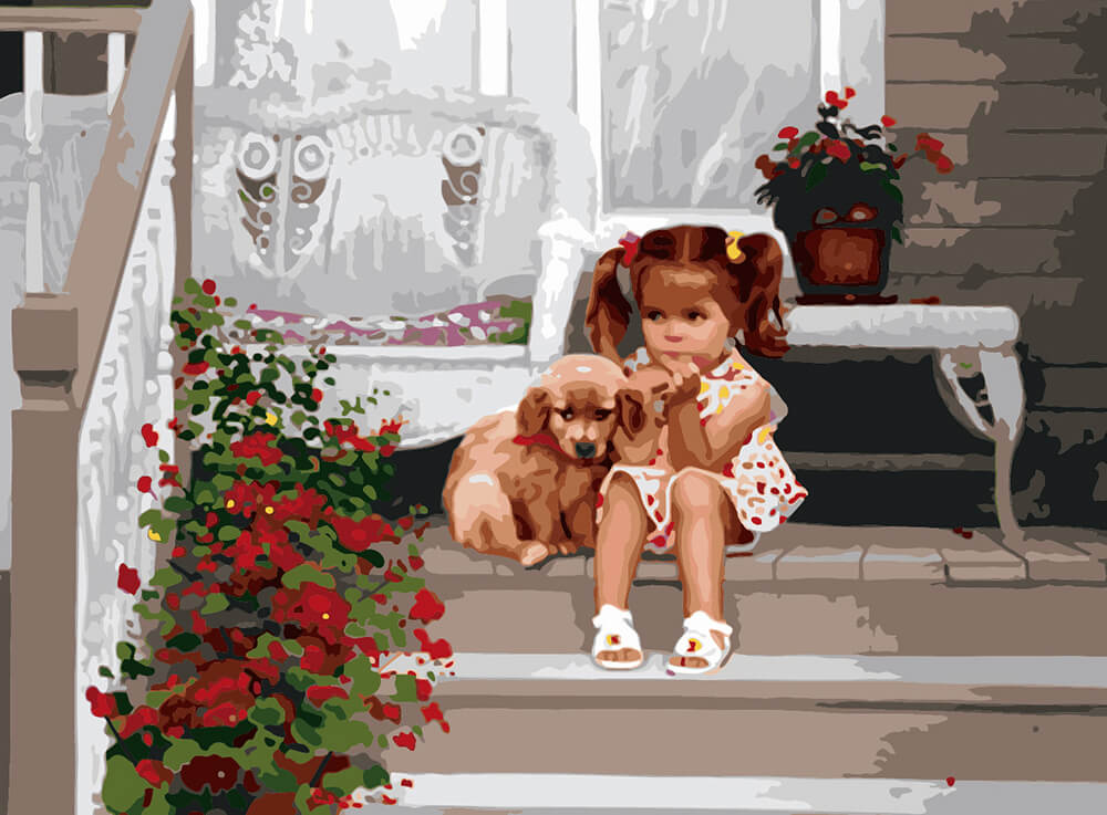 Набор для рисования картины по номерам Девочка с собакой, арт. KH1024, 40х50см. ***НАЛИЧИЕ УТОЧНЯЙТЕ***