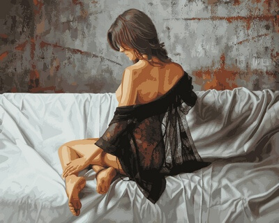 Набор для рисования картины по номерам Девушка в черном пеньюаре, арт. VP693, 40х50см. ***НАЛИЧИЕ УТОЧНЯЙТЕ***