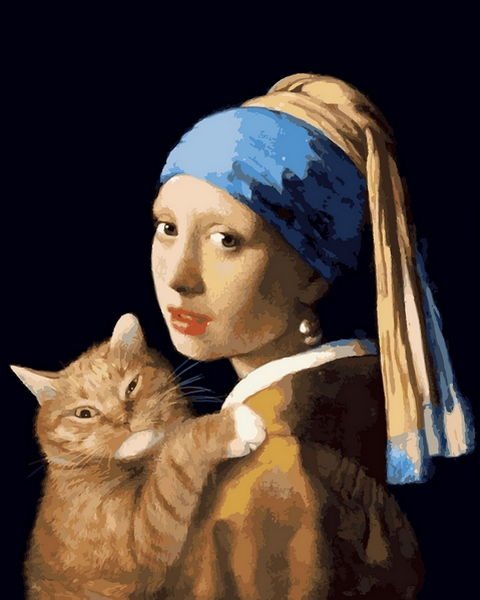 Набор для рисования картины по номерам Девушка с жемчужной сережкой с котом, арт. VP1171, 40х50см. ***НАЛИЧИЕ УТОЧНЯЙТЕ***