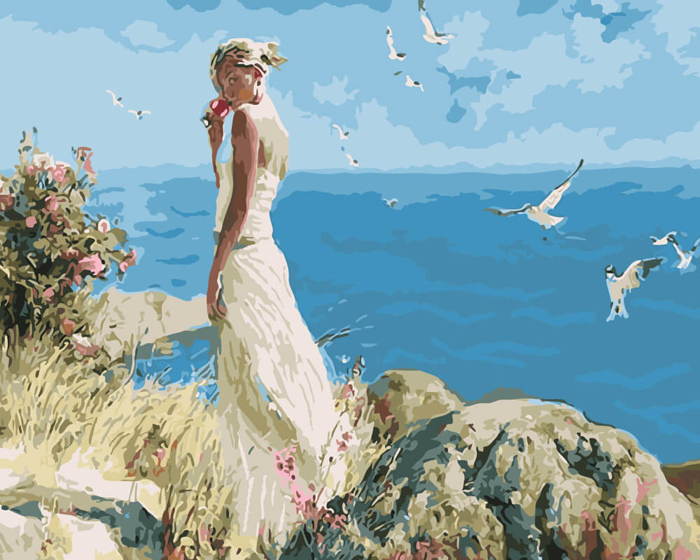 Набор для рисования картины по номерам Девушка у моря, арт. BK-GX5705, 40х50см. ***НАЛИЧИЕ УТОЧНЯЙТЕ***