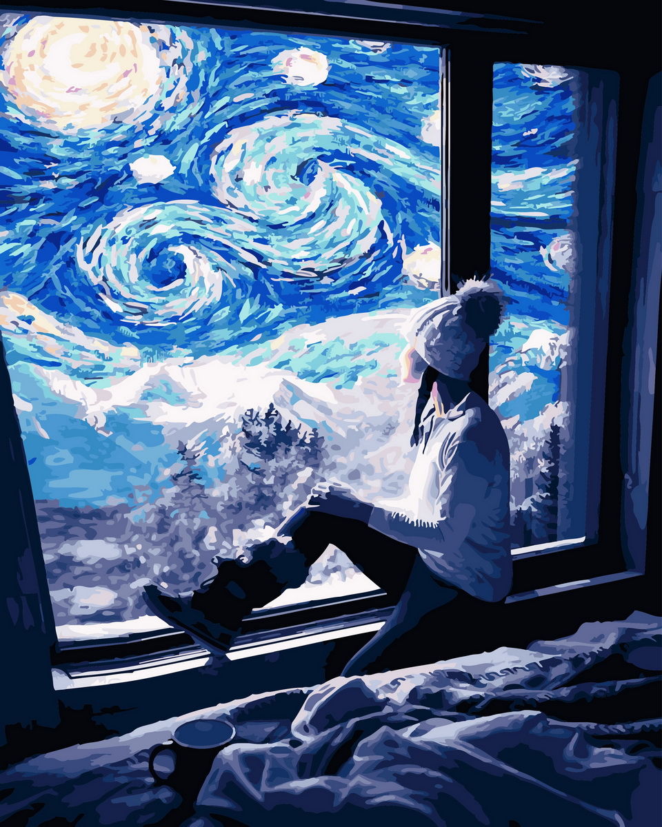 Набор для рисования картины по номерам Звёздная ночь, арт. BRM30434, 40х50см. ***НАЛИЧИЕ УТОЧНЯЙТЕ***
