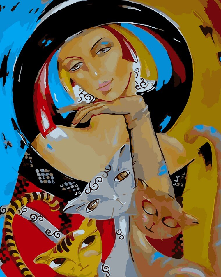 Набор для рисования картины по номерам Леди с котами, арт. AS0083, 40х50см. ***НАЛИЧИЕ УТОЧНЯЙТЕ***