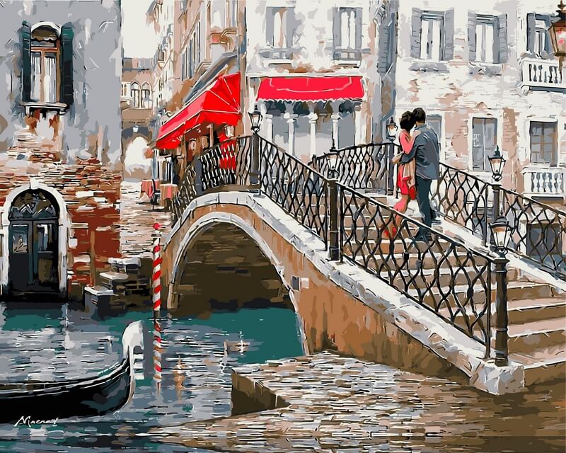 Набор для рисования Мост влюбленных, арт. VP444 (Babylon) содержит: прогрунтованный холст на подрамнике с нанесенной номерной схемой, акриловые краски, кисти, крепеж на стену и инструкцию с фото. В коробке. Размер 40х50см. Худ. МакНейл Ричард