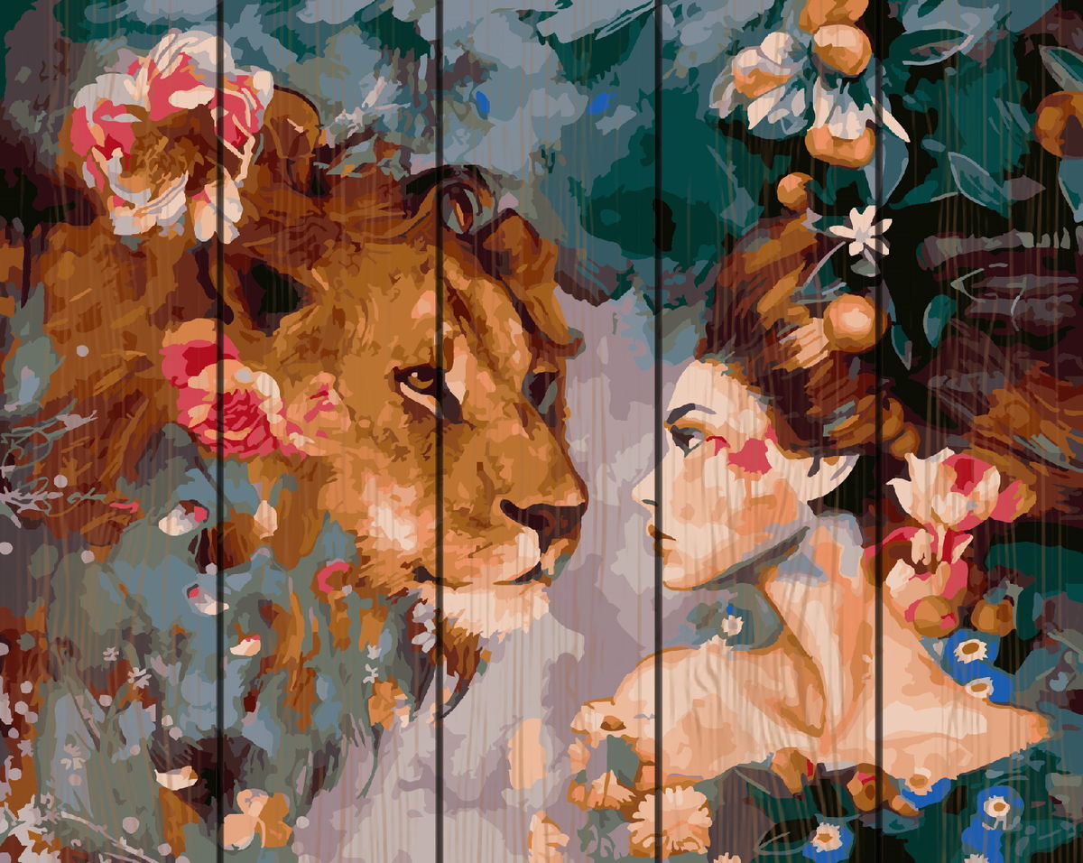 Набор для рисования картины по номерам на дереве Девушка и лев, арт. RA-GXT23397, 40х50см. ***НАЛИЧИЕ УТОЧНЯЙТЕ***