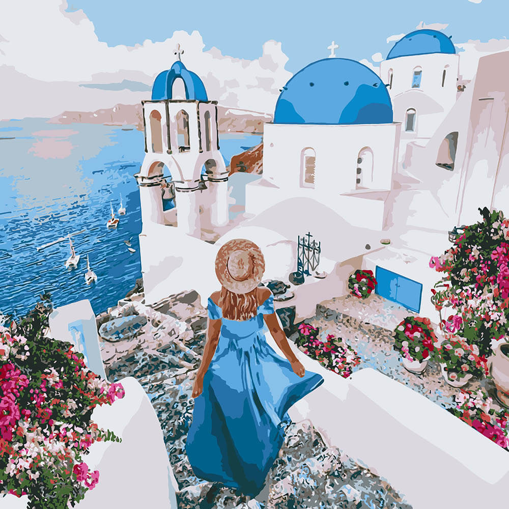 Набор для рисования картины по номерам Незабываемый Санторини, арт. KHO4729, 40х40см. ***НАЛИЧИЕ УТОЧНЯЙТЕ***