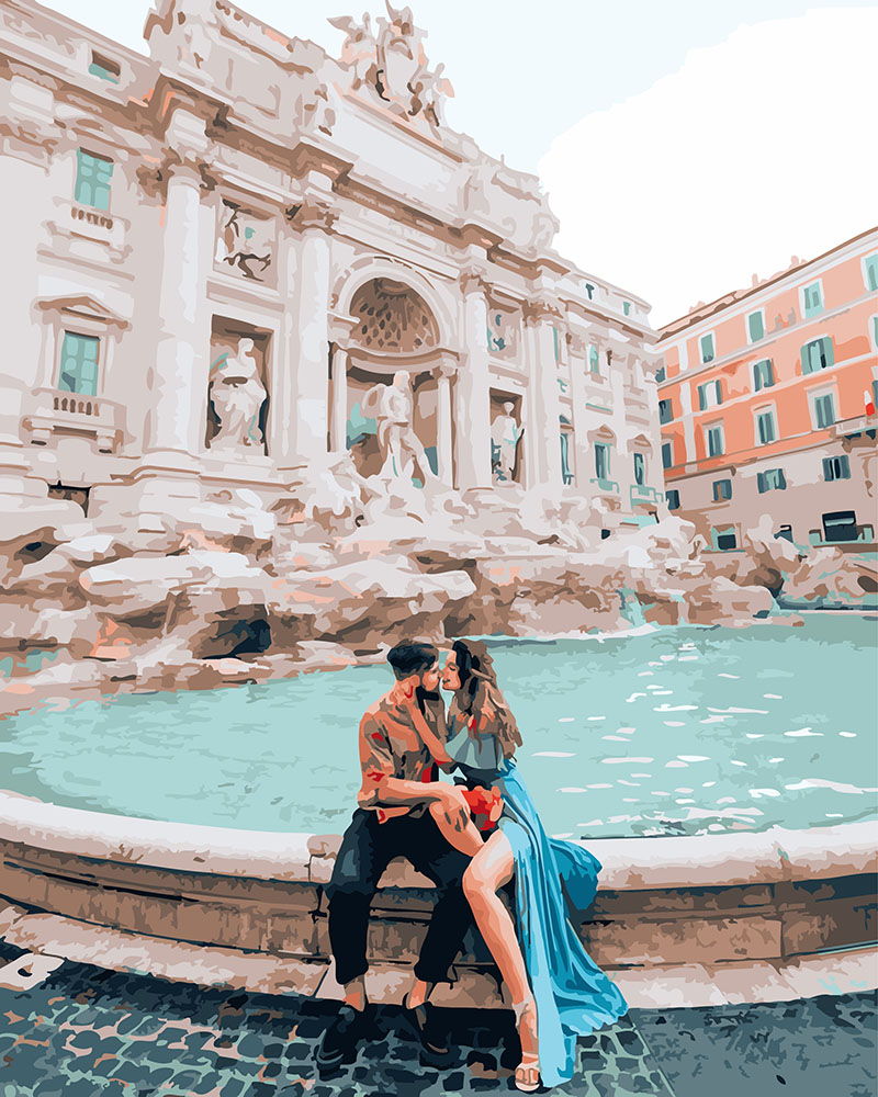 Набор для рисования картины по номерам Пара у фонтана, арт. BK-GX25411, 40х50см. ***НАЛИЧИЕ УТОЧНЯЙТЕ***