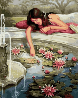 Набор для рисования картины по номерам Фонтан с лотосами, арт. VP674, 40х50см. ***НАЛИЧИЕ УТОЧНЯЙТЕ***