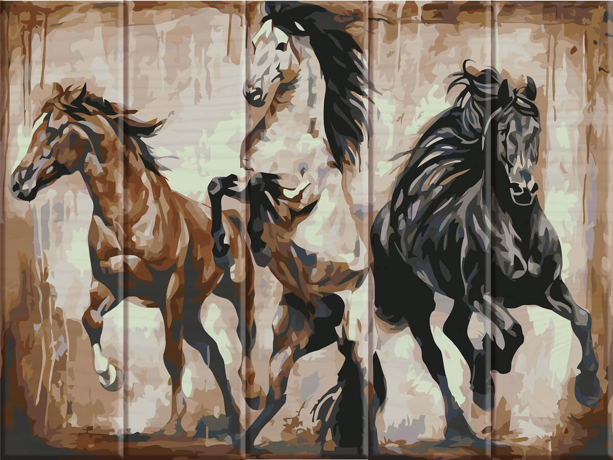 Набор для рисования Три масти, арт. ASW019 (ArtStory) содержит: деревянное панно с нанесенной номерной схемой, акриловые краски, лак, кисти, крепеж на стену и инструкцию с фото. Размер 30х40см.
