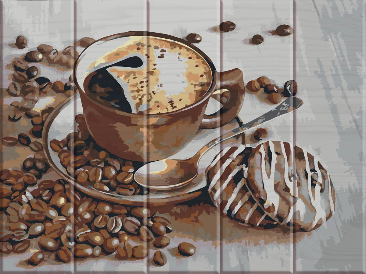 Набор для рисования картины по номерам на дереве Чашка кофе, арт. ASW028, 30х40см. ***НАЛИЧИЕ УТОЧНЯЙТЕ***