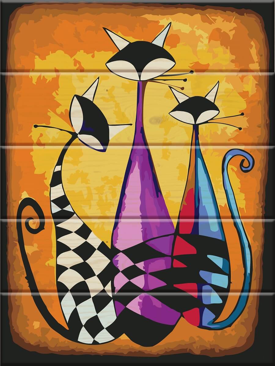 Набор для рисования картины по номерам на дереве 3 кота, арт. ASW018, 30х40см. ***НАЛИЧИЕ УТОЧНЯЙТЕ***