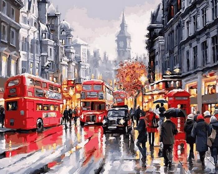 Набор для рисования Автобусы ночного города, арт. VP763, ТМ Babylon содержит: прогрунтованный холст на подрамнике с нанесенной номерной схемой, акриловые краски, кисти, крепеж на стену и инструкцию с фото. В коробке. Размер 40х50см. Худ-к Ричард Макнейл