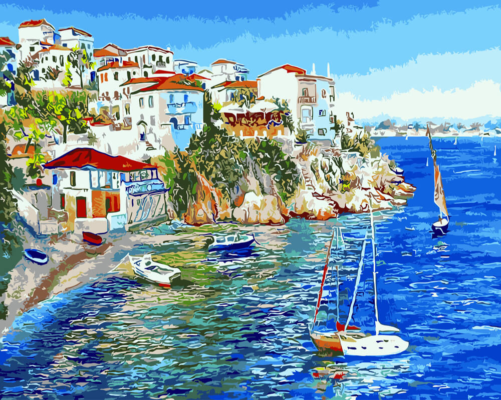 Набор для рисования картины по номерам Белые домики Греции, арт. BK-GX9627, 40х50см. ***НАЛИЧИЕ УТОЧНЯЙТЕ***