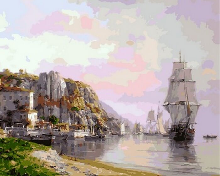 Набор для рисования картины по номерам Большой парусник у причала, арт. VP858, 40х50см. ***НАЛИЧИЕ УТОЧНЯЙТЕ***