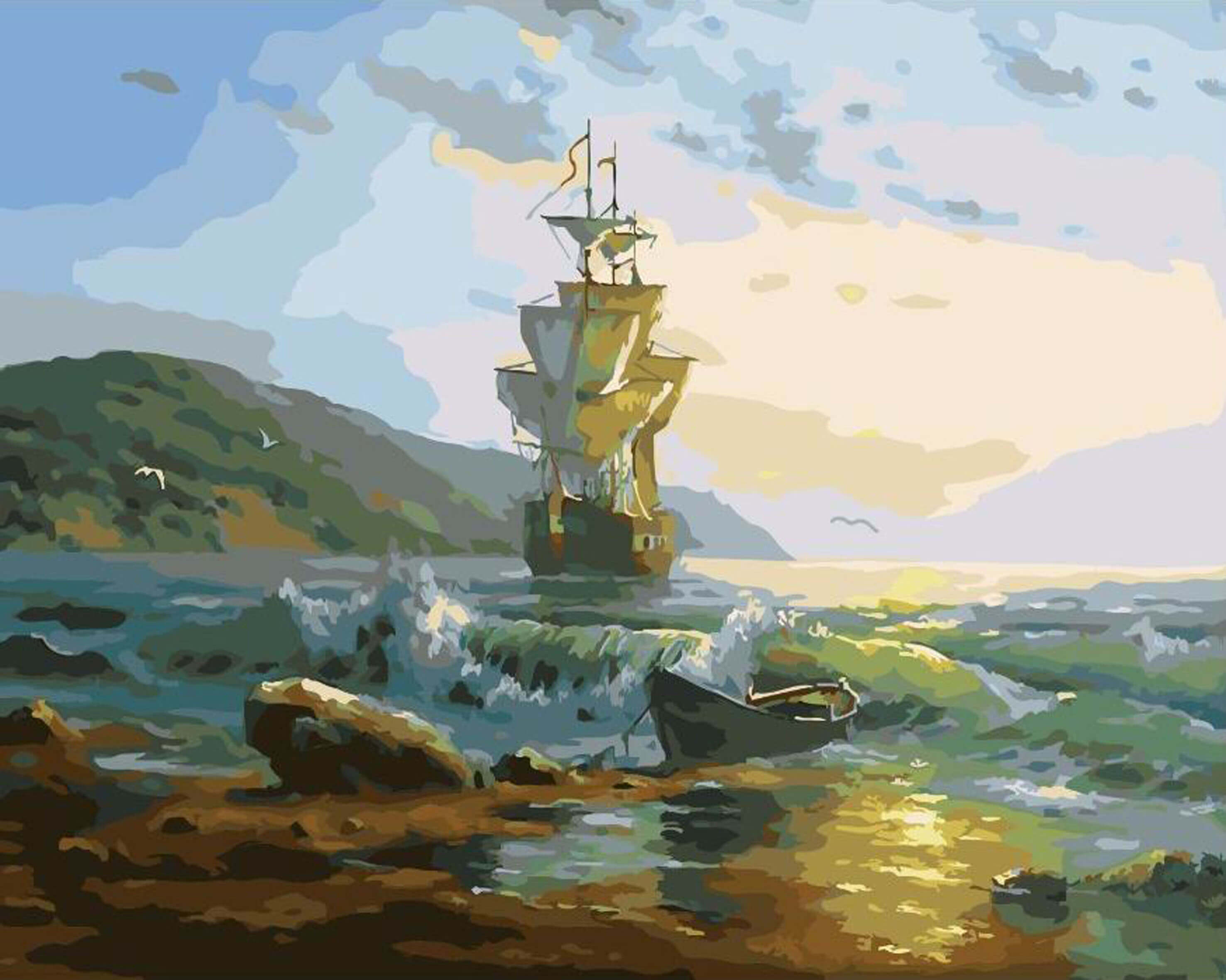 Набор для рисования по номерам Бушующее море, арт. BK-GX21072 (БК-GX) содержит: прогрунтованный холст на подрамнике с нанесенной номерной схемой, акриловые краски, кисти, крепеж на стену и инструкцию с фото. Без коробки. Размер 40х50см.