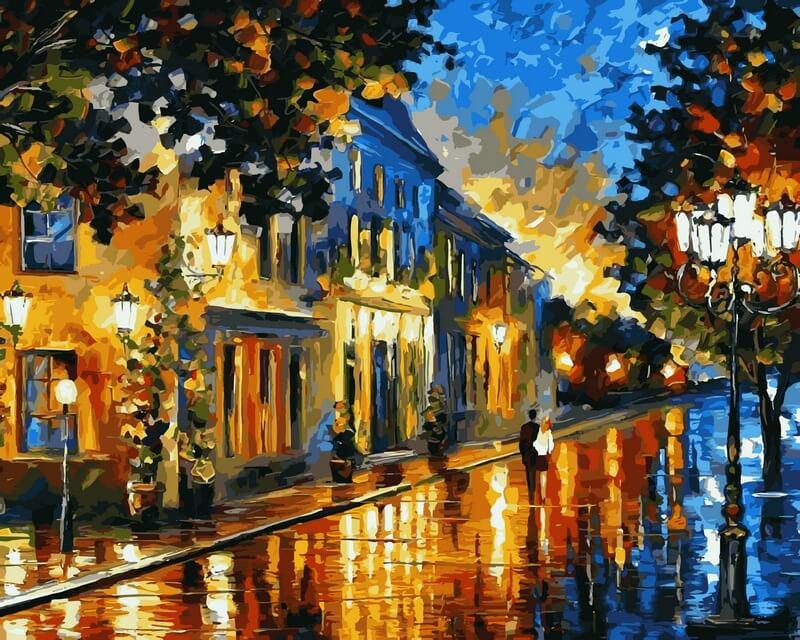 Набор для рисования Вечерний бульвар, арт. VP522 (Babylon) содержит: прогрунтованный холст на подрамнике с нанесенной номерной схемой, акриловые краски, кисти, крепеж на стену и инструкцию с фото. В коробке. Размер 40х50см. Худ. Афремов, Леонид