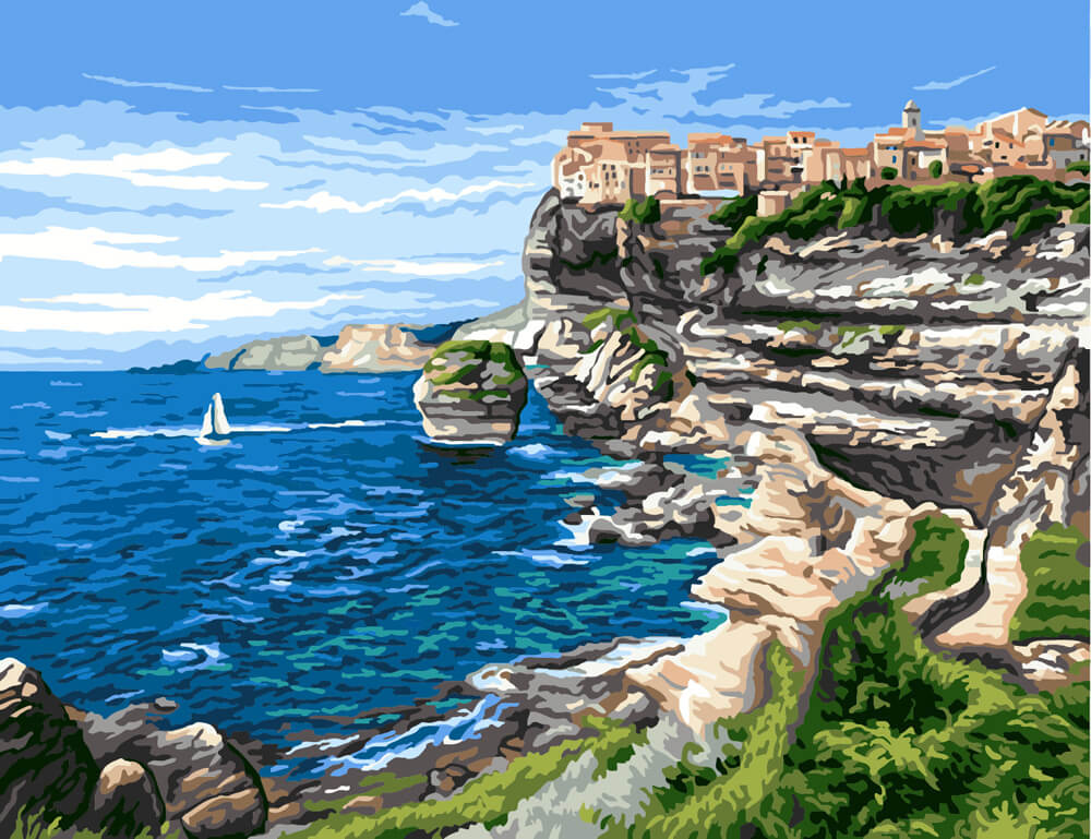 Набор для рисования Вид на бухту, арт. BK-GX6691 (Rainbow Art) содержит: прогрунтованный холст на подрамнике с нанесенной номерной схемой, акриловые краски, кисти, крепеж на стену и инструкцию с фото. Размер 40х50см.