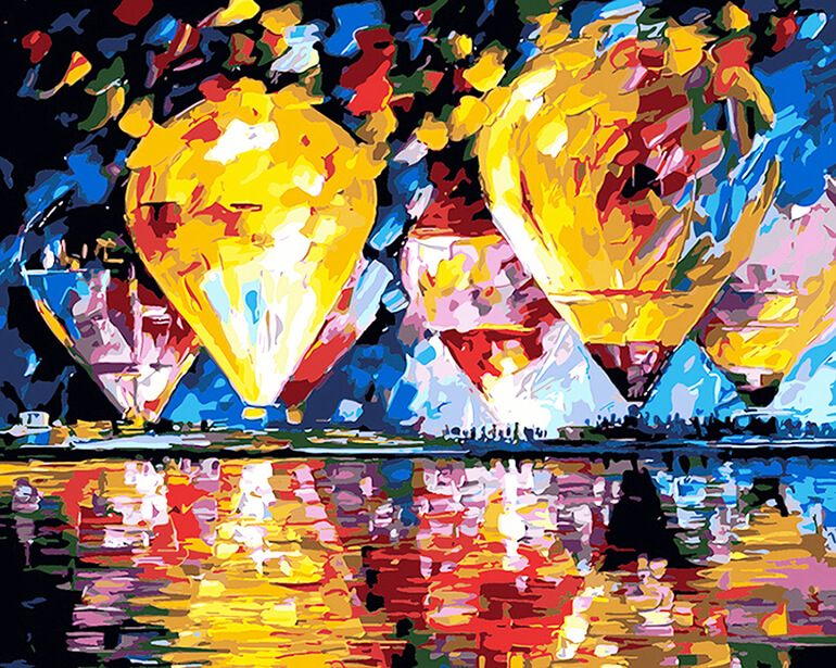 Набор для рисования Воздушные шары, арт. KHO1012 (Идейка) содержит: прогрунтованный холст на подрамнике с нанесенной номерной схемой, акриловые краски, кисти, крепеж на стену и инструкцию с фото. Без коробки. Размер 40х50см. Худ. Афремов, Леонид