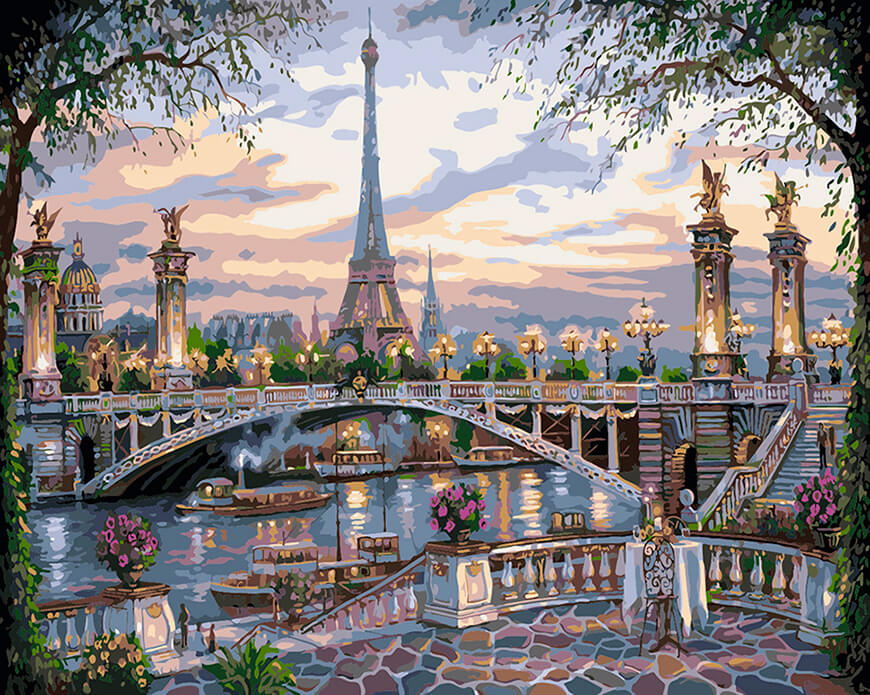 Набор для рисования Воспоминание о Париже, арт. KHO1148 (Идейка) содержит: прогрунтованный холст на подрамнике с нанесенной номерной схемой, акриловые краски, кисти, крепеж на стену и инструкцию с фото. Без коробки. Размер 40х50см. Худ. Финале, Роберт