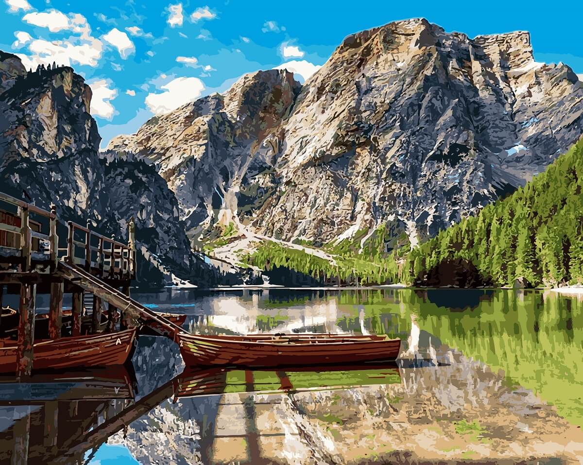 Набор для рисования Горная переправа, арт. VP909 (Babylon) содержит: прогрунтованный холст на подрамнике с нанесенной номерной схемой, акриловые краски, кисти, крепеж на стену и инструкцию с фото. Размер 40х50см.