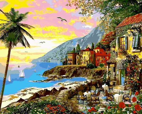 Набор для рисования картины по номерам Городок в лучах заката, арт. VP1149, 40х50см. ***НАЛИЧИЕ УТОЧНЯЙТЕ***