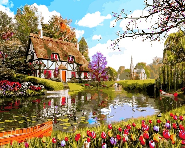 Набор для рисования картины по номерам Домик среди тюльпанов, арт. MR-Q2203, 40х50см. ***НАЛИЧИЕ УТОЧНЯЙТЕ***