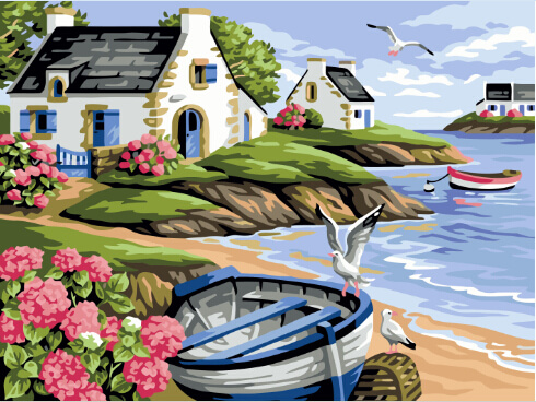 Набор для рисования картины по номерам Домик у моря, арт. BK-EX6096, 30х40см. ***НАЛИЧИЕ УТОЧНЯЙТЕ***