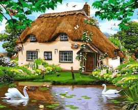 Набор для рисования картины по номерам Домик у пруда с лебедями, арт. BK-GX8291, 40х50см. ***НАЛИЧИЕ УТОЧНЯЙТЕ***
