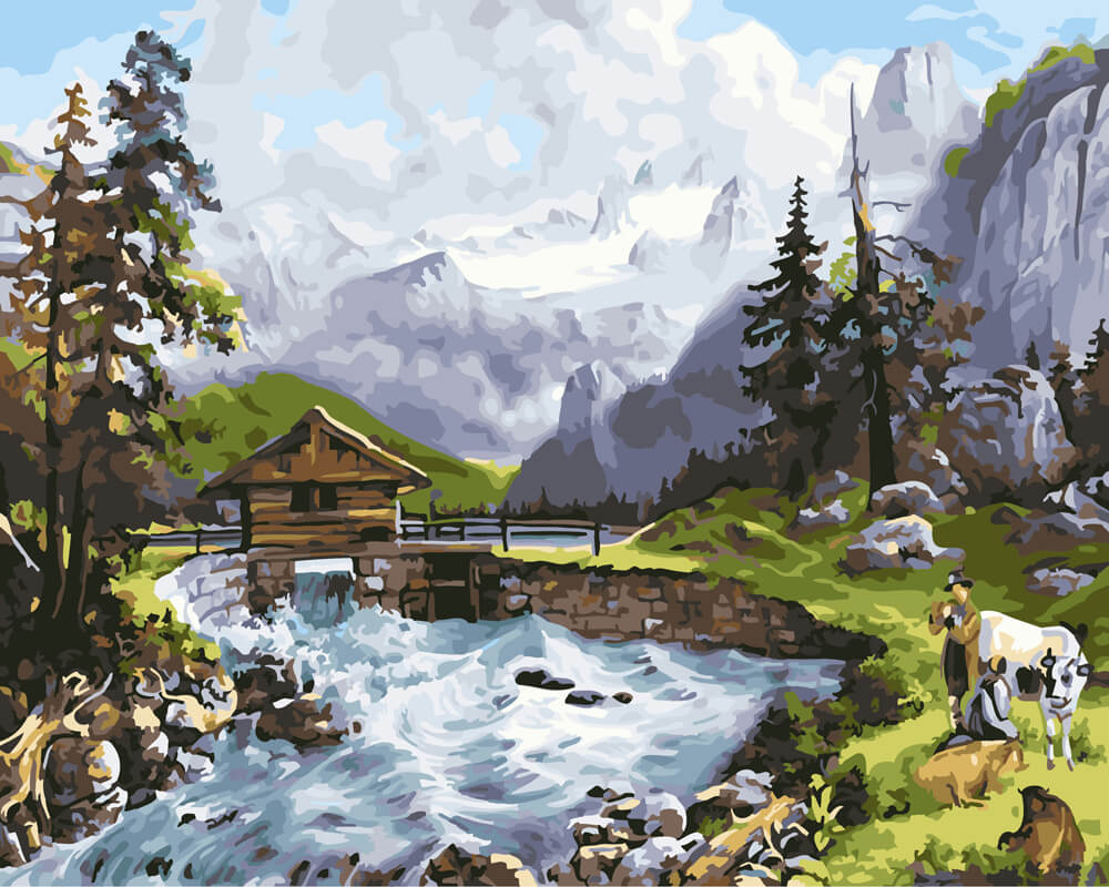 Набор для рисования картины по номерам Домик у реки, арт. BK-GX24317, 40х50см. ***НАЛИЧИЕ УТОЧНЯЙТЕ***