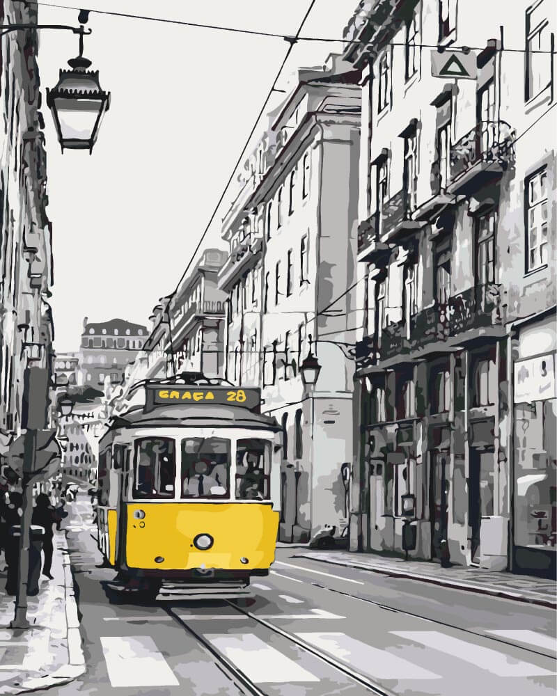 Набор для рисования картины по номерам Жёлтый трамвайчик, арт. KH2187, 40х50см. ***НАЛИЧИЕ УТОЧНЯЙТЕ***