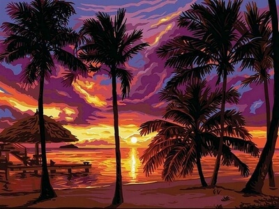 Набор для рисования картины по номерам Закат в тропиках, арт. VK044, 30х40см. ***НАЛИЧИЕ УТОЧНЯЙТЕ***