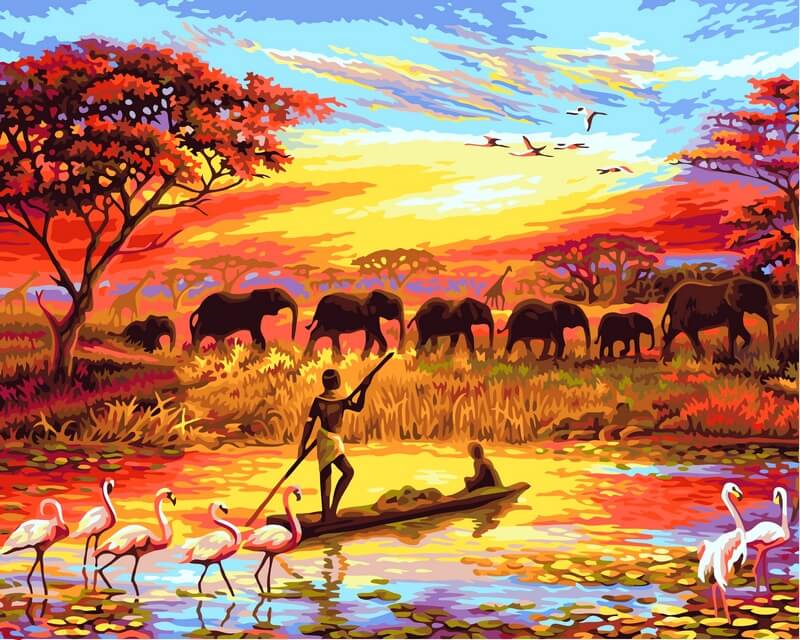 Набор для рисования Закат над Нилом, арт. NB419, ТМ Babylon Premium содержит: льняной, слегка окрашенный номерной холст на подрамнике, акриловые краски, нейлоновые кисти, матовый лак, крепеж на стену и инструкцию. Размер 40х50см.