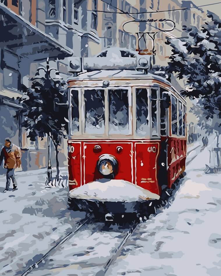 Набор для рисования картины по номерам Заснеженный трамвай, арт. AS0042, 40х50см. ***НАЛИЧИЕ УТОЧНЯЙТЕ***
