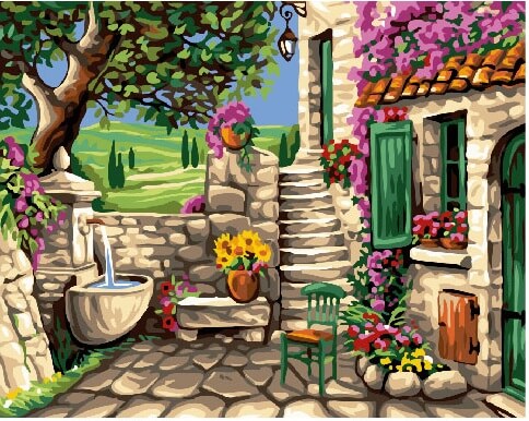 Набор для рисования картины по номерам Каменный дворик, арт. BK-GX24103, 40х50см. ***НАЛИЧИЕ УТОЧНЯЙТЕ***